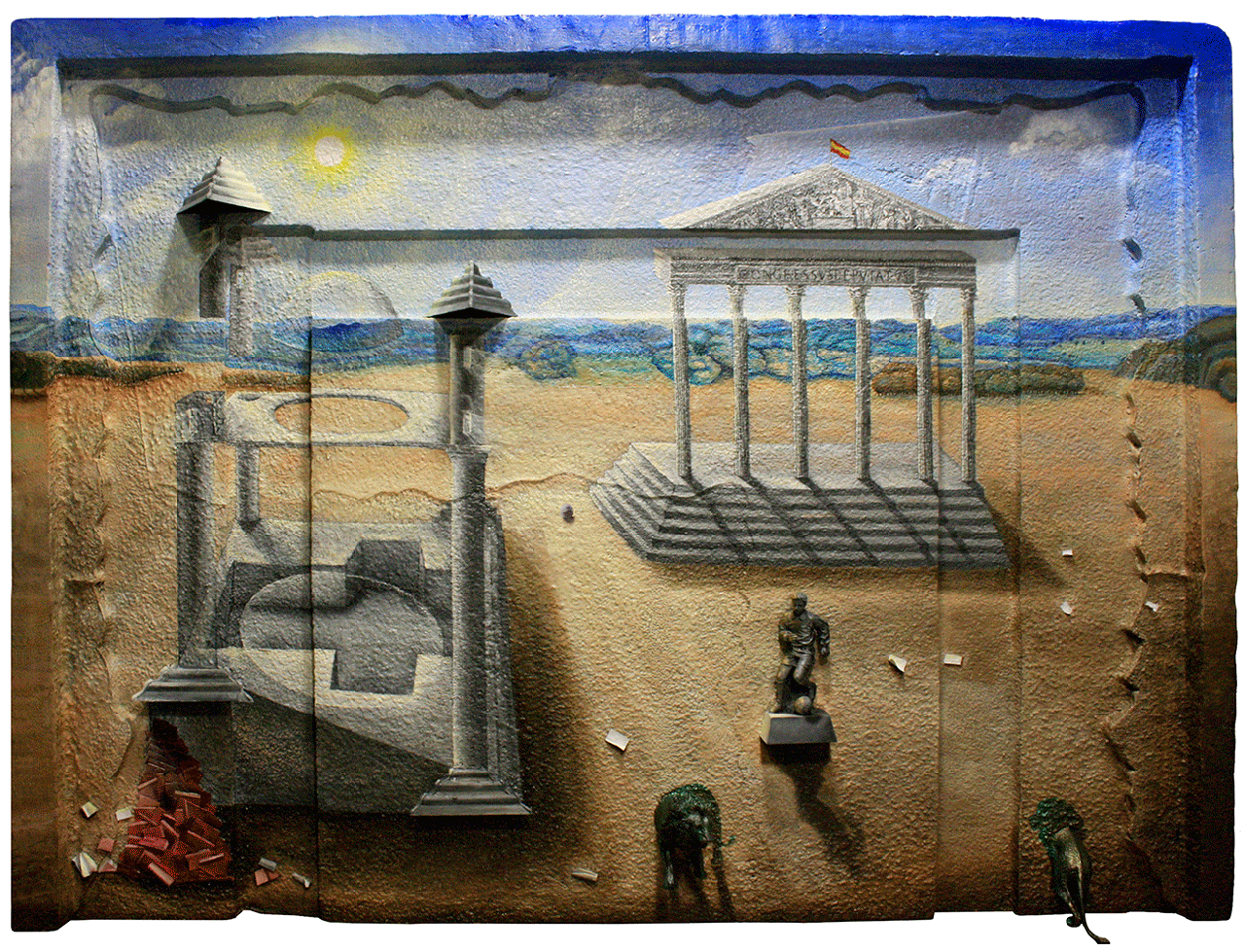 Técnica: Óleo sobre poliestireno y objetos. Medidas: 130 x 190 cm Año: 2017